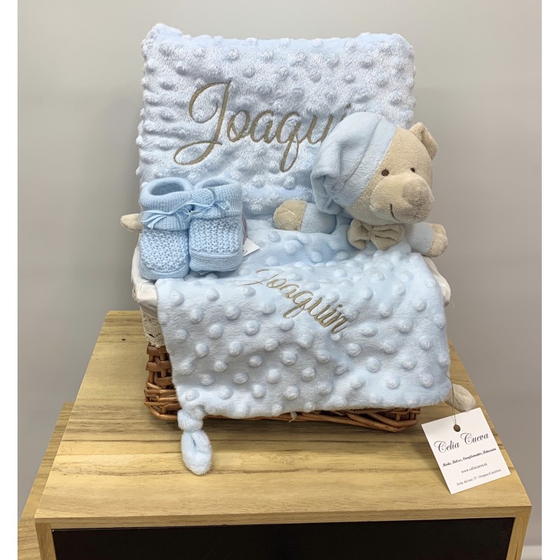 Canastilla 3 piezas: azul, rosa o beige. manta + dou dou + patuco
