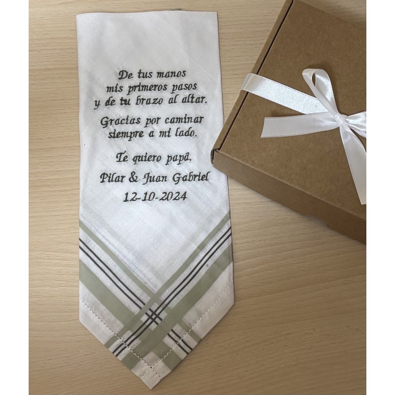 Pañuelo bordado con dedicatoria para el padres y padrinos en la boda.